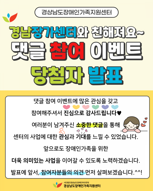 2025년 "경남장가센터와 친해져요~" 댓글 참여 이벤트 당첨자 발표 안내